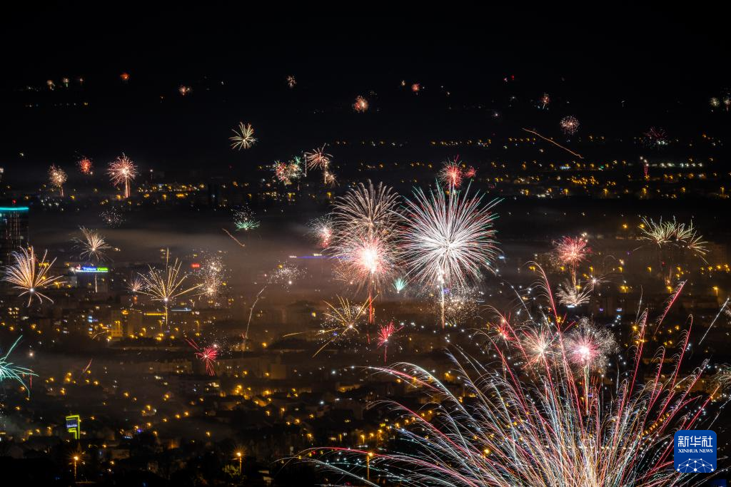 2026年1月1日,新年烟花在克罗地亚首都萨格勒布上空绽放。