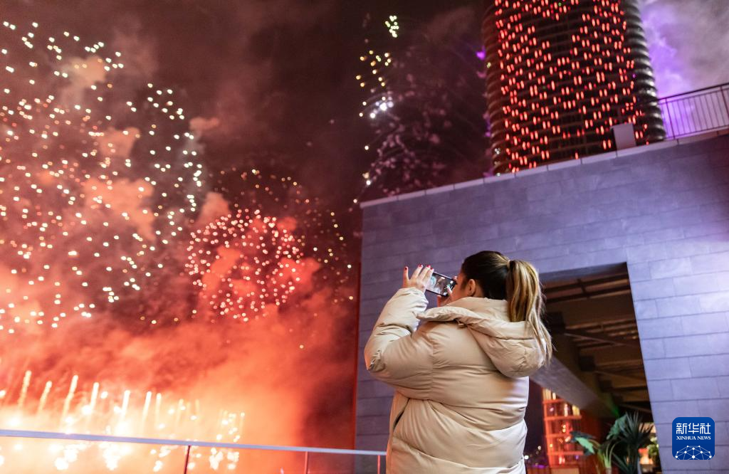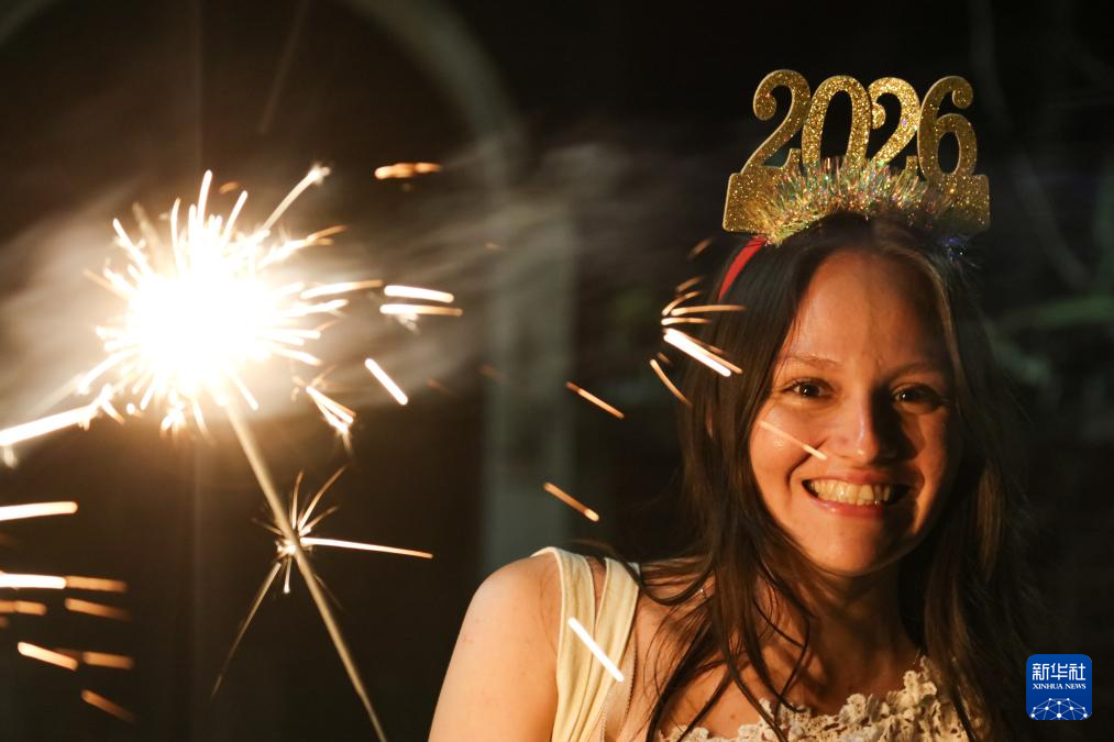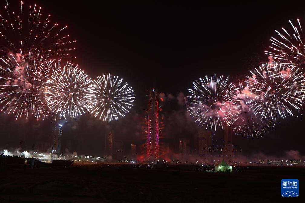 这是2026年1月1日在卡塔尔首都多哈拍摄的新年庆祝活动现场。