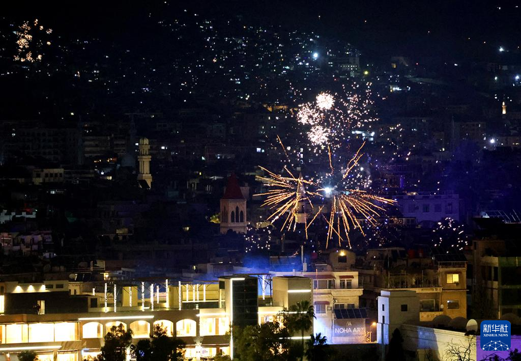 2026年1月1日,叙利亚首都大马士革燃放烟花迎接新年到来。