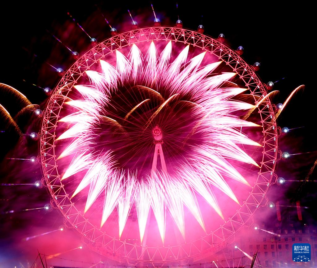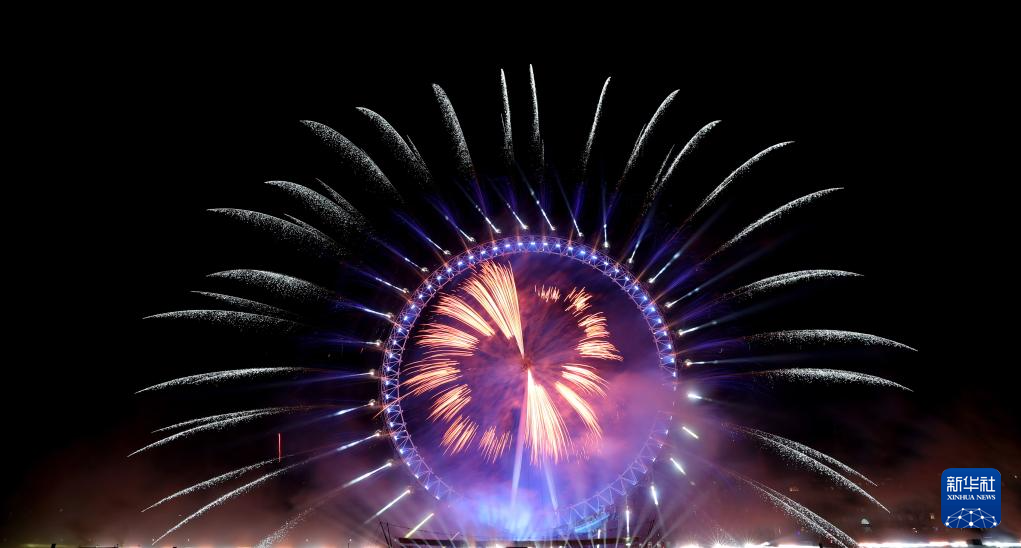 2026年1月1日凌晨,在英国伦敦,新年烟花在伦敦眼绽放。