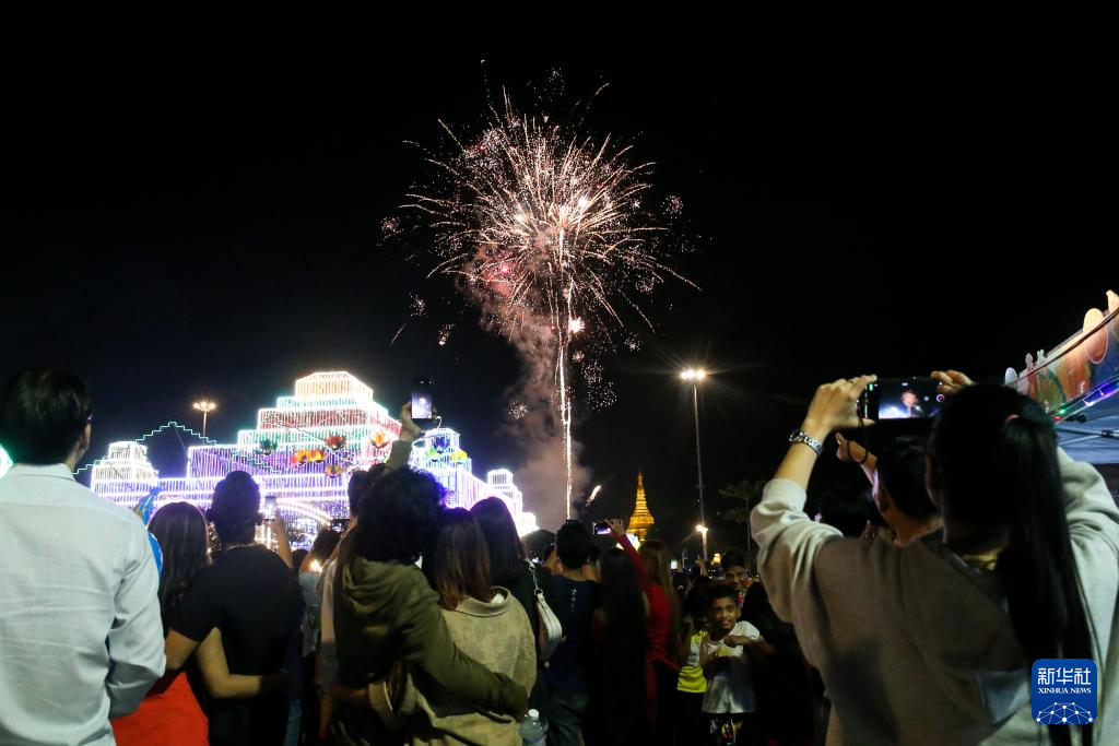 2026年1月1日凌晨,人们在缅甸仰光观赏新年烟花。
