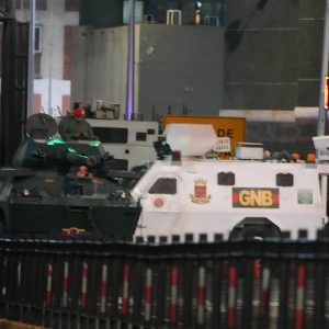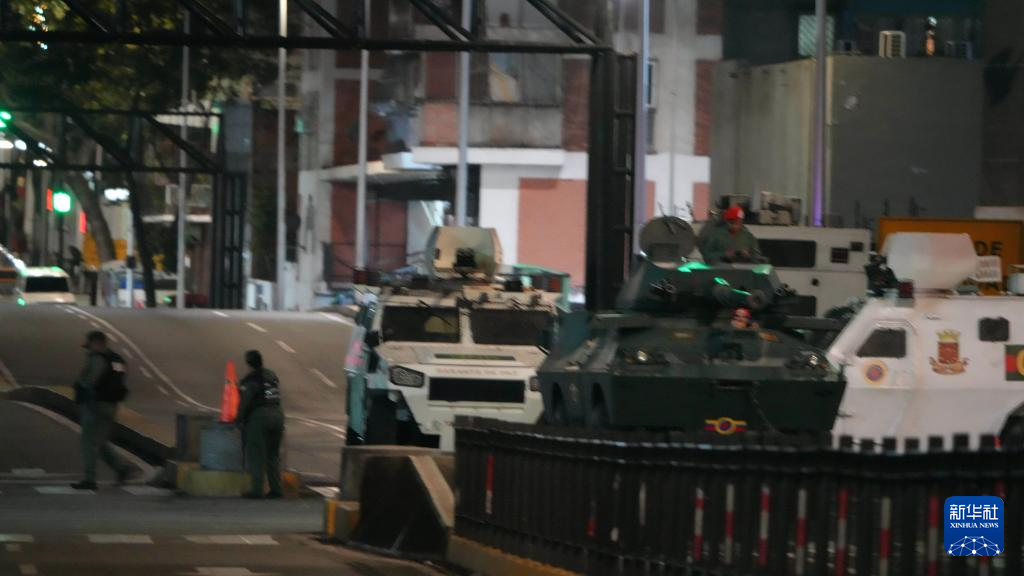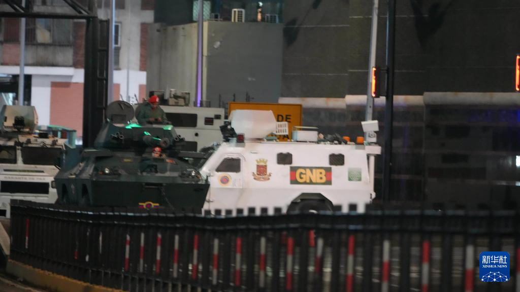 这是1月3日凌晨在委内瑞拉首都加拉加斯的总统府附近拍摄的军用车辆。新华社发