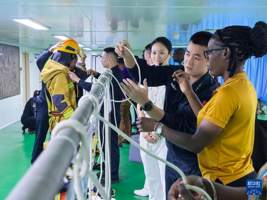 2025年12月26日,中国海军“丝路方舟”号医院船官兵与巴巴多斯国防军学员进行交流。