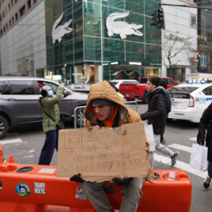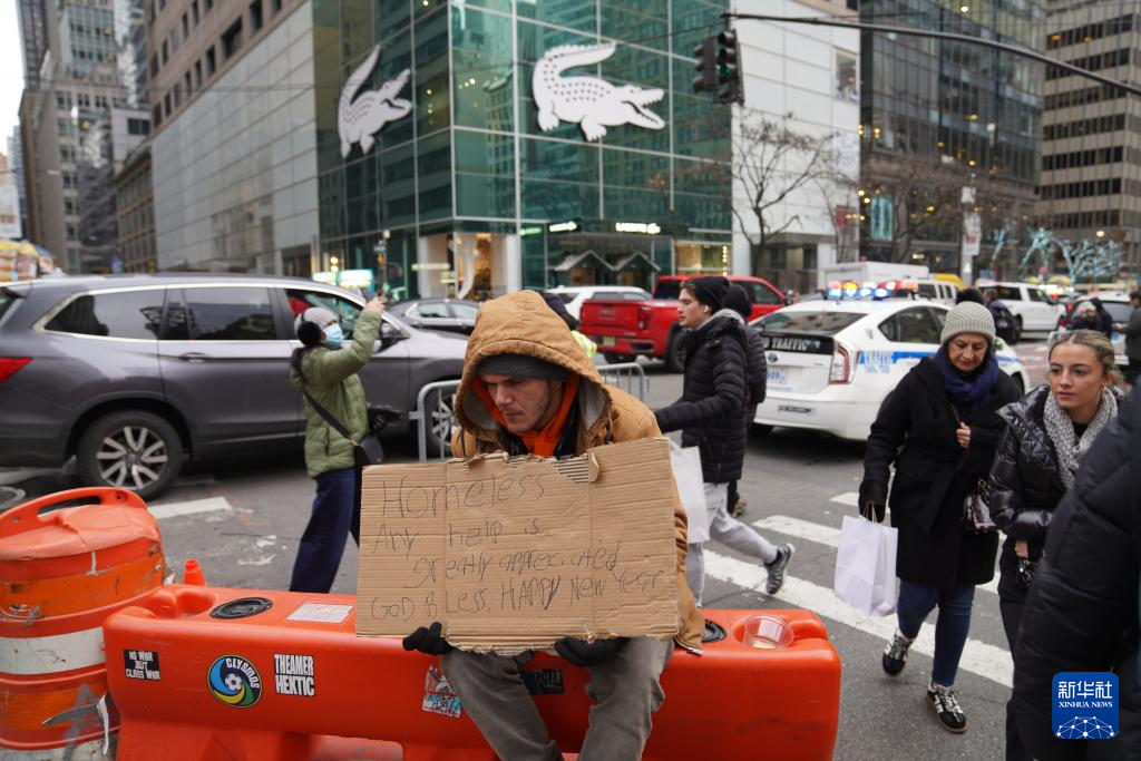 2025年12月31日,无家可归者在美国纽约的街头寻求帮助。