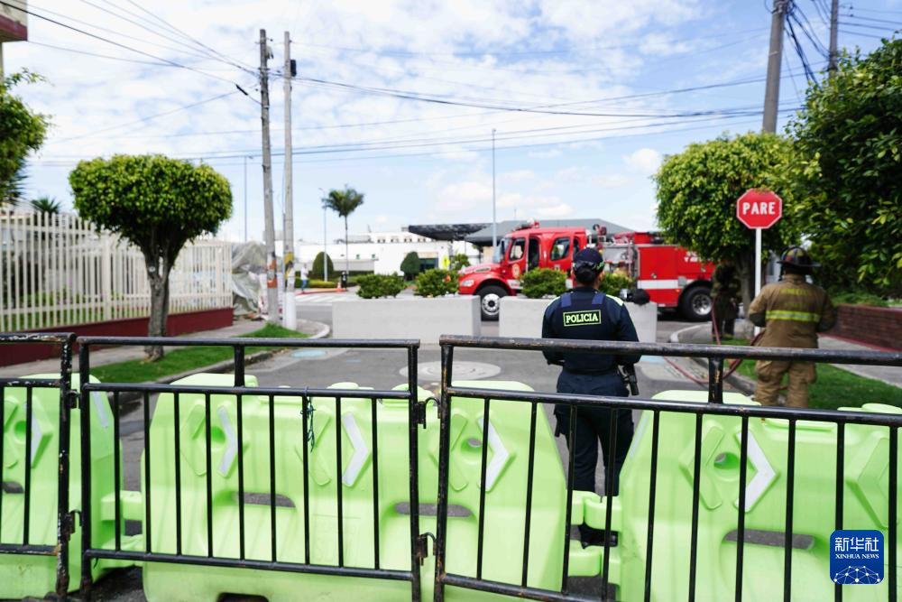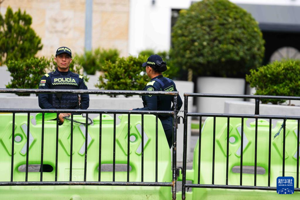 1月3日,在哥伦比亚首都波哥大,警察在美国驻哥伦比亚大使馆外执勤。新华社发(安德烈斯·莫雷诺摄)