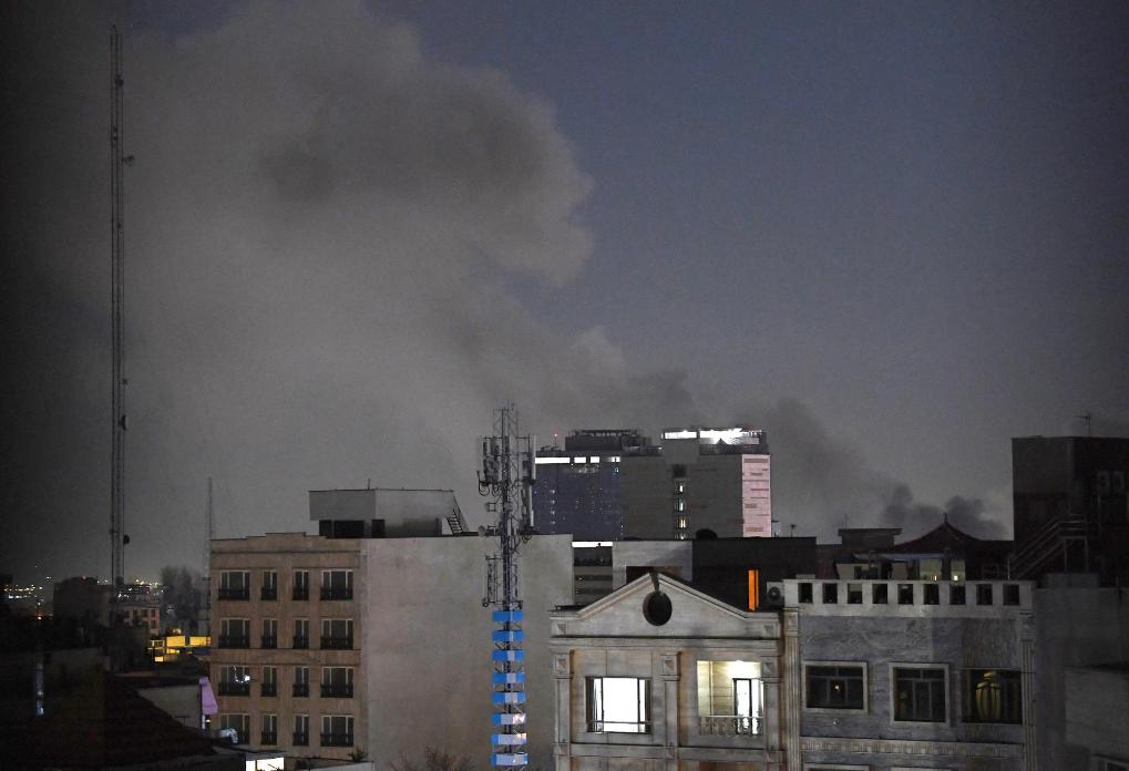 这是3月1日晚在伊朗首都德黑兰市区拍摄的浓烟。新华社记者沙达提摄