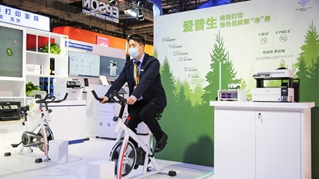 多家参展商携冰雪运动相关展品亮相第四届进博会,在“四叶草”内上演“冰雪奇缘”。