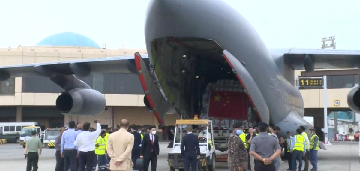 一架载有中国援巴抗洪救灾人道主义物资的中国空军运—20运输机30日飞抵巴基斯坦南部城市卡拉奇。