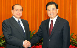胡锦涛会见意大利总理贝卢斯科尼