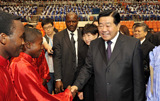 贾庆林参观雅温得第二大学孔子学院