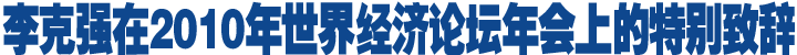 国务院副总理李克强28日出席了在瑞士达沃斯举行的2010年世界经济论坛年会,并发表了题为《合作包容 共创未来 促进世界经济健康复苏和持续发展》的特别致辞。