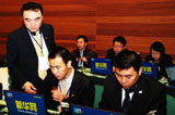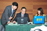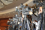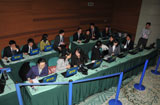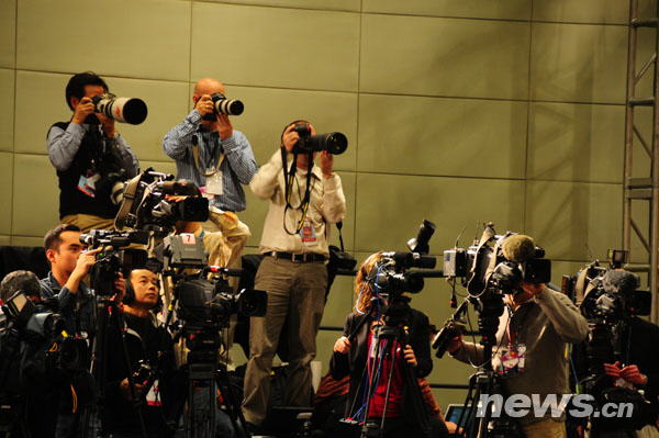 繁忙的新华社美国总统奥巴马访华报道发稿中心