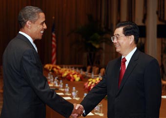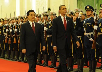 胡锦涛举行仪式欢迎美国总统奥巴马