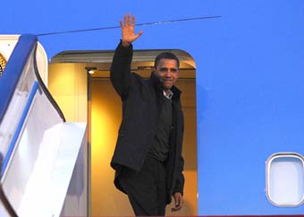 美国总统奥巴马抵沪开始首次对中国的国事访问