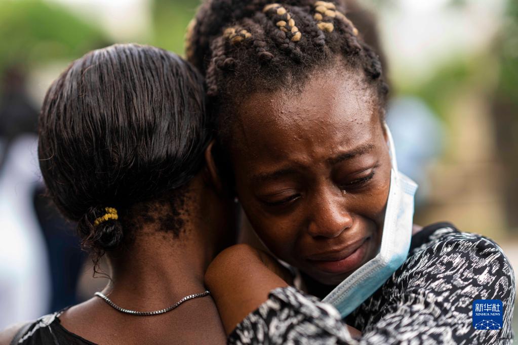 8月21日,一名女子在海地莱凯附近的马瑟林参加在地震中遇难亲人的葬礼时哭泣。