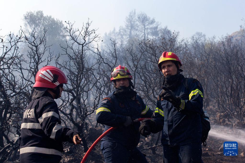 8月23日,消防员在希腊雅典西北的维利亚村进行灭火作业。