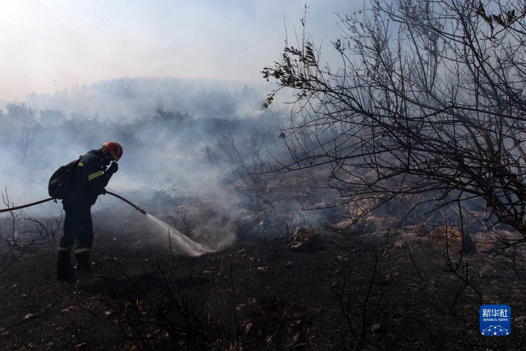 8月23日,消防员在希腊雅典西北的维利亚村进行灭火作业。