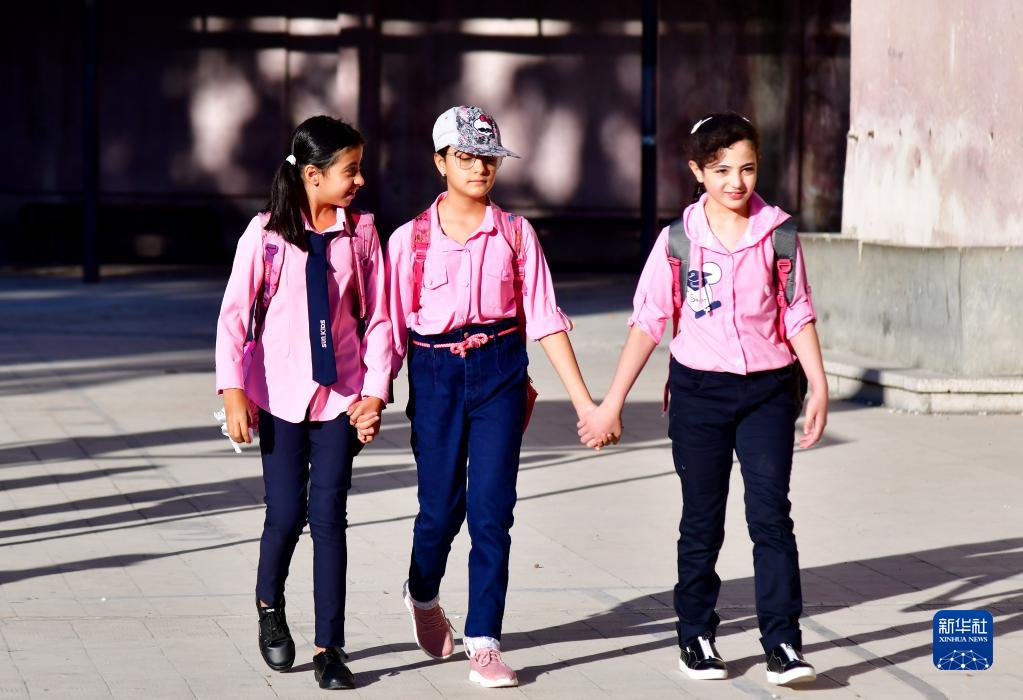 这是9月5日在叙利亚首都大马士革一所学校拍摄的学生。
