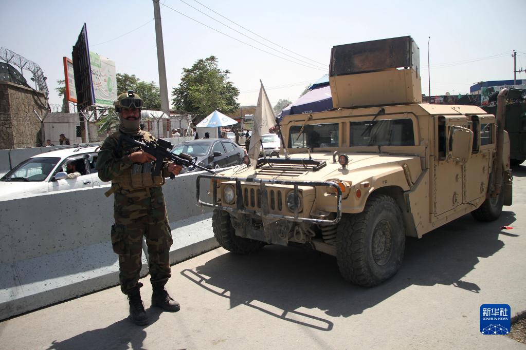 9月6日,一名塔利班人员在阿富汗喀布尔国际机场大门外执勤。