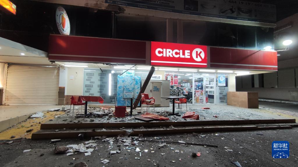 9月7日,在墨西哥格雷罗州阿卡普尔科,一家便利店所在的建筑在地震中受损。