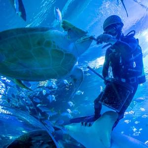 9月29日,一名工作人员在马来西亚吉隆坡城中城水族馆为重新开放做清洁。