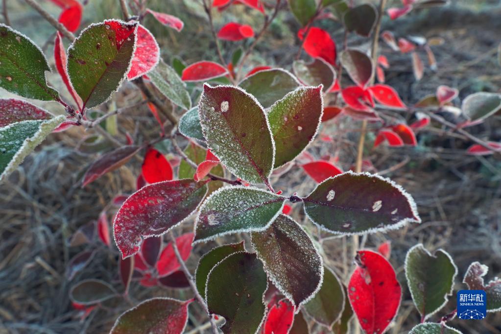 这是在白俄罗斯首都明斯克郊外拍摄的结霜的叶片(10月1日摄)。