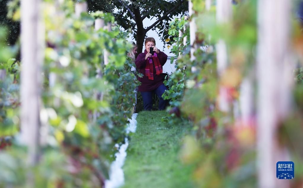 10月6日,一名女子在法国巴黎蒙马特高地葡萄园参观。