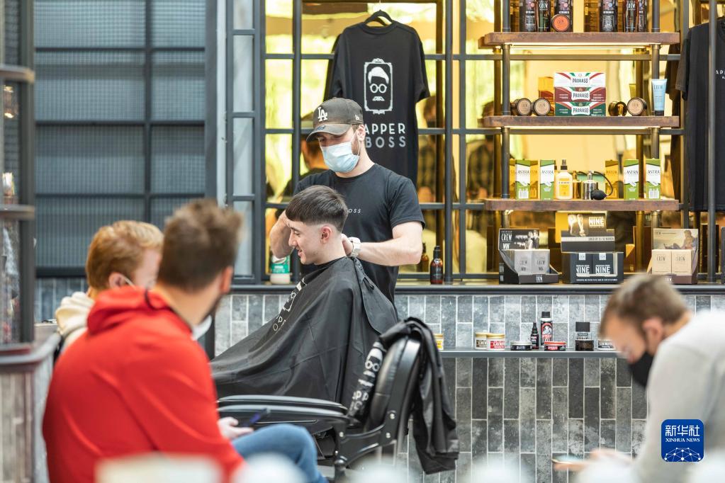 10月15日,顾客在澳大利亚首都堪培拉一家恢复营业的理发店理发。
