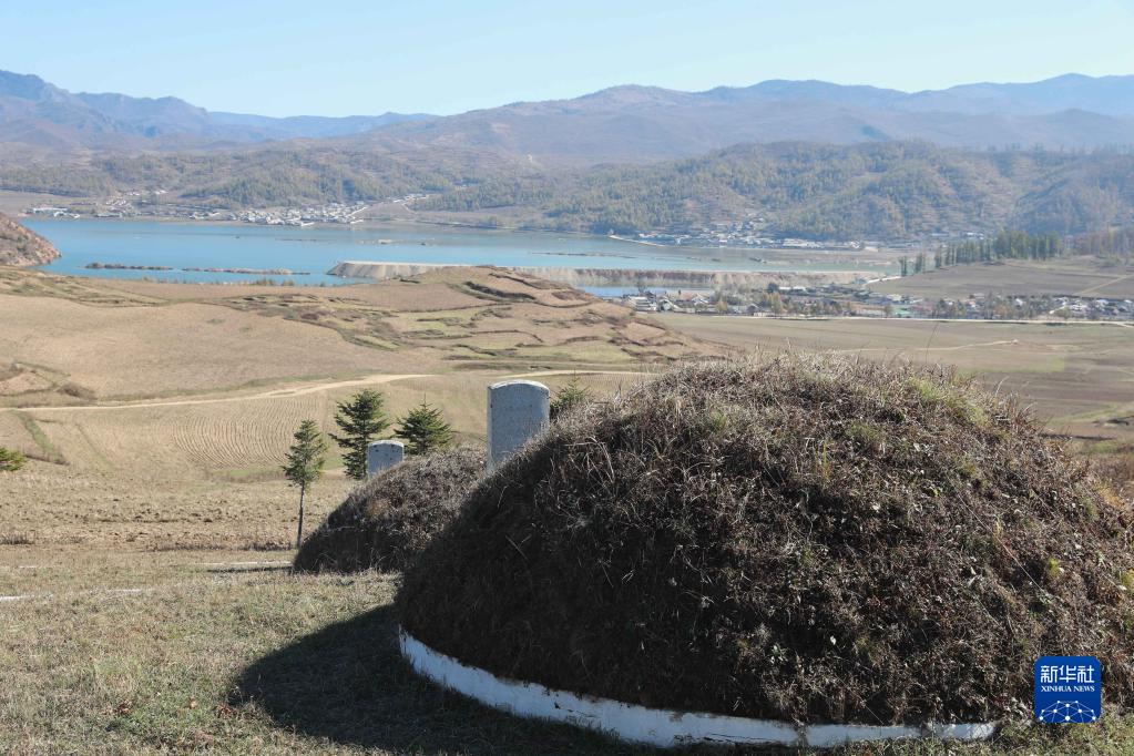 这是10月23日在朝鲜咸镜南道西北部拍摄的长津邑中国人民志愿军烈士合葬墓地。山坡下的湖即为朝鲜北部最大的湖泊长津湖。新华社记者 江亚平 摄