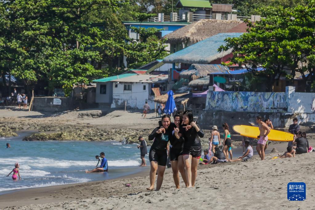 10月30日,人们在菲律宾拉乌尼翁的海滩休闲。