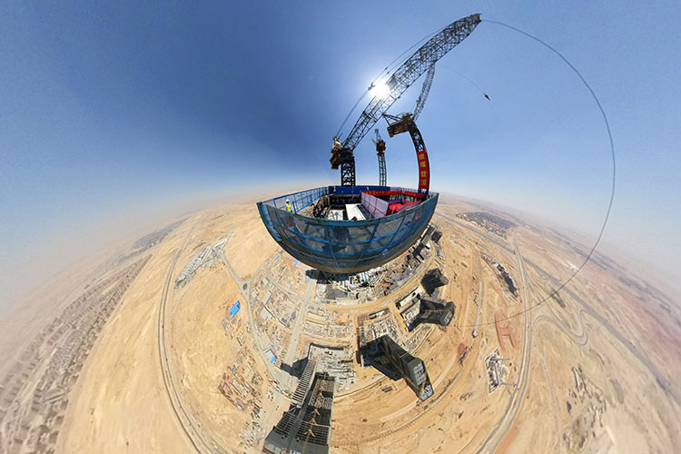 埃及新行政首都中央商务区标志塔(2021年6月17日摄,全景照片)。埃及新行政首都中央商务区项目由中国建筑股份有限公司埃及分公司承建。
