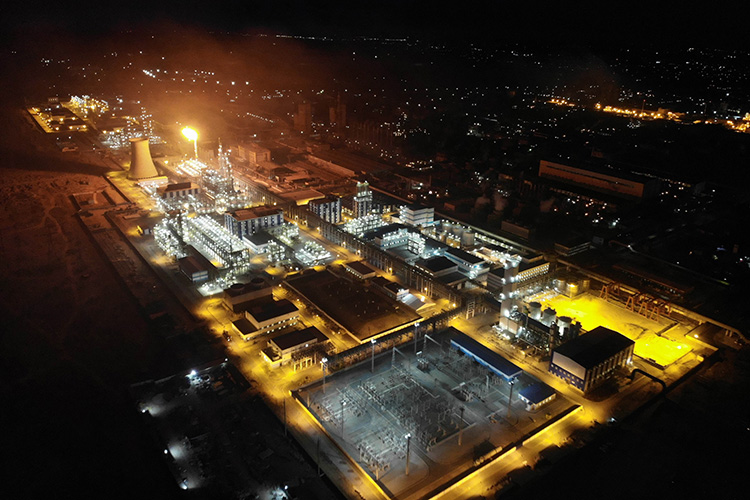 Photo taken on Nov. 20, 2019 shows a view of the plants of a new chemical complex built by Chinese companies in Navoi region, Uzbekistan. (Xinhua)