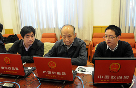 新华网、中国政府网工作人员在报道现场