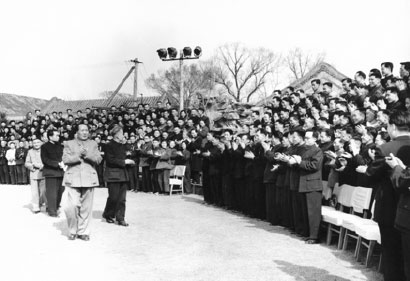 1956年4月2日,毛泽东、刘少奇、周恩来、邓小平、彭真等中央领导同志接见新华社国内分社会议全体代表。