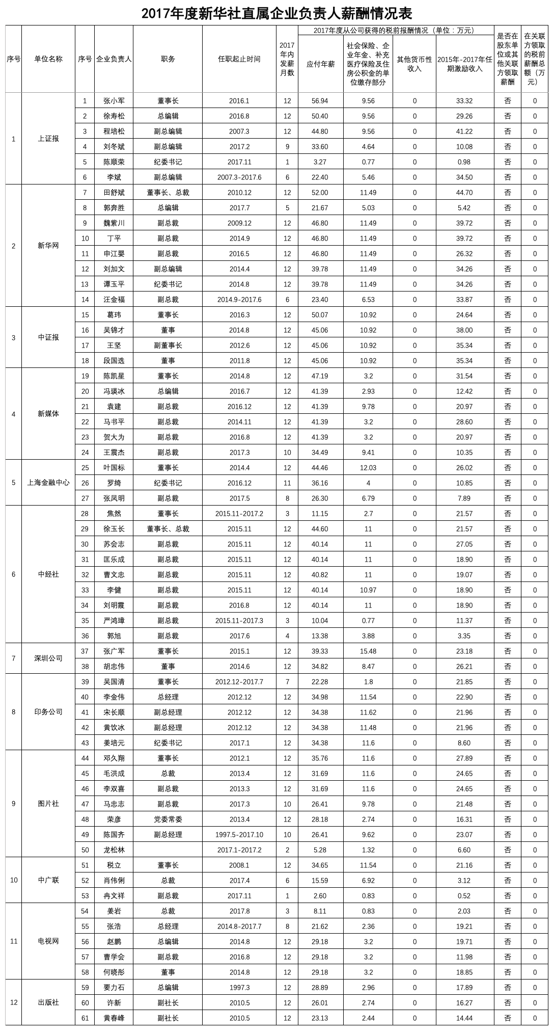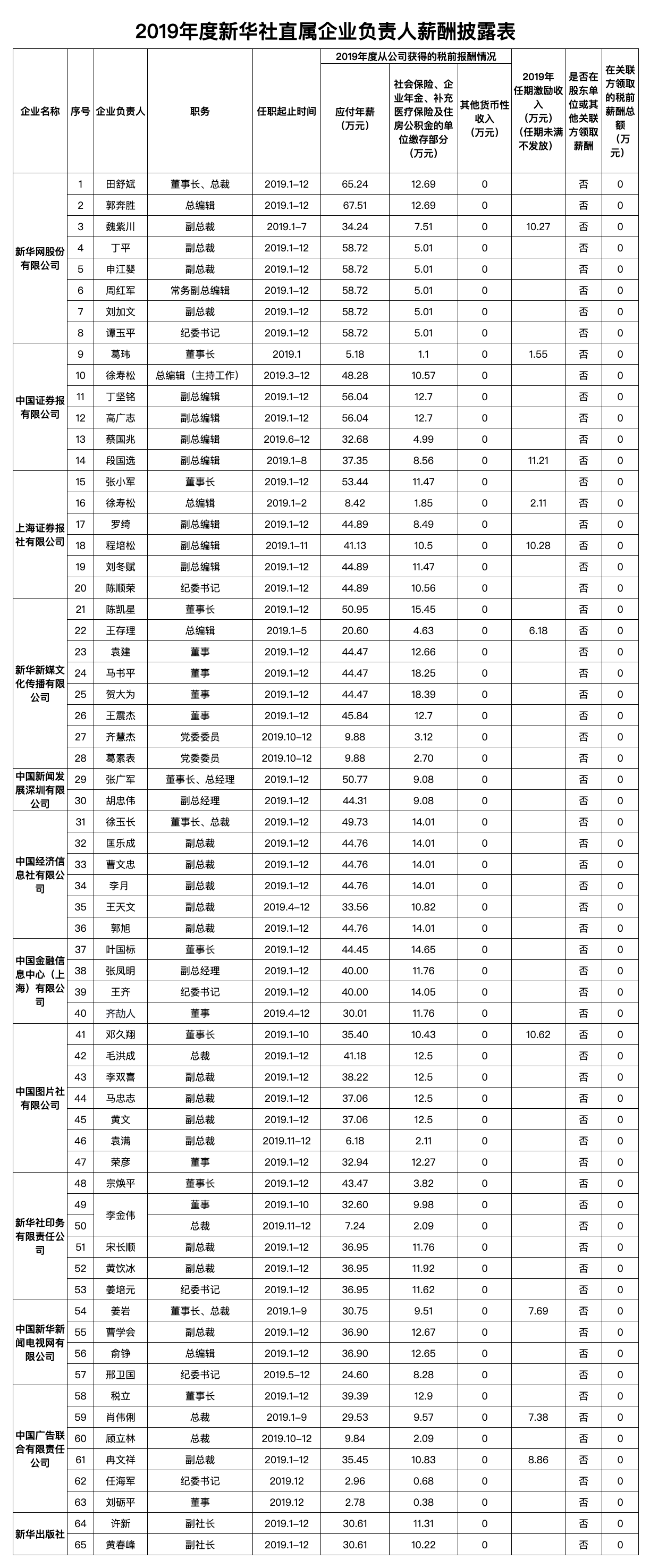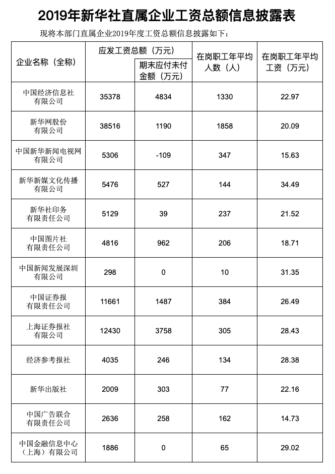 2019年新华社直属企业工资总额信息披露表