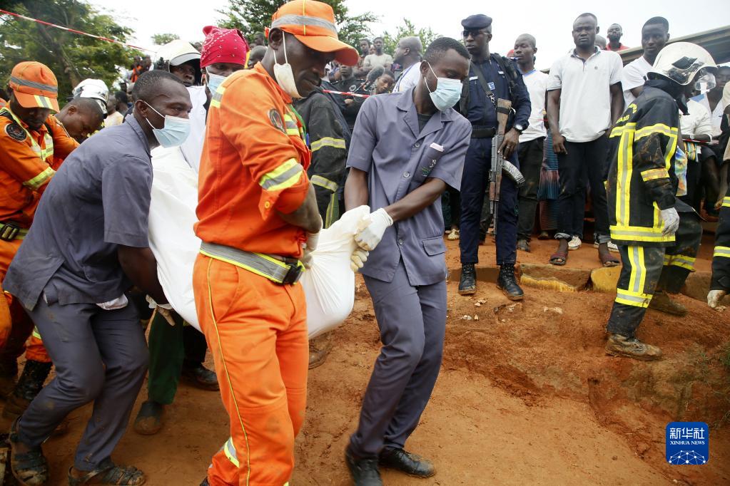 6月16日,在科特迪瓦阿比让,救援人员搬运滑坡事故遇难者遗体。