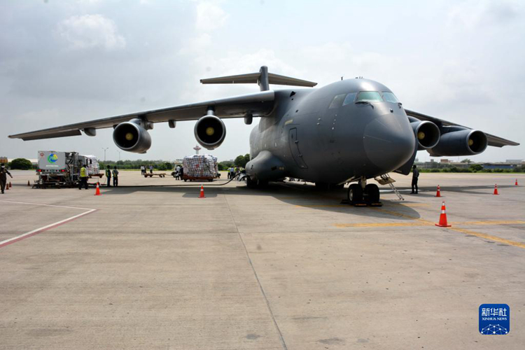 一架载有中国援巴抗洪救灾人道主义物资的中国空军运-20运输机30日飞抵巴基斯坦南部城市卡拉奇。