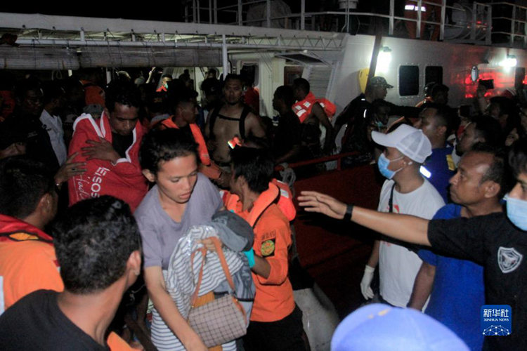 10月24日,救援人员在印度尼西亚东努沙登加拉省疏散客轮乘客。