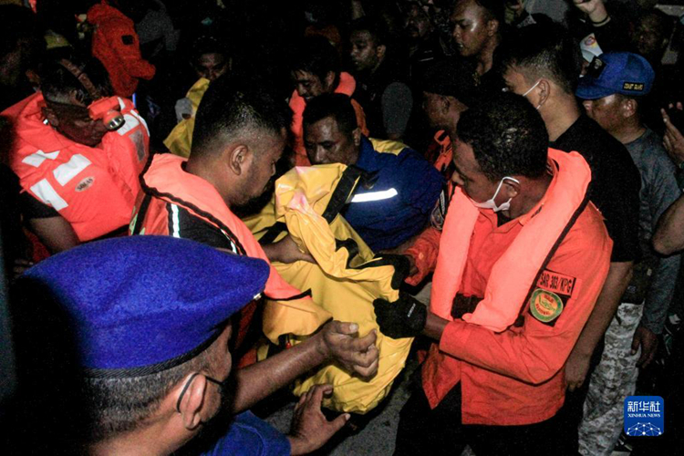 10月24日,救援人员在印度尼西亚东努沙登加拉省转运遇难者遗体。