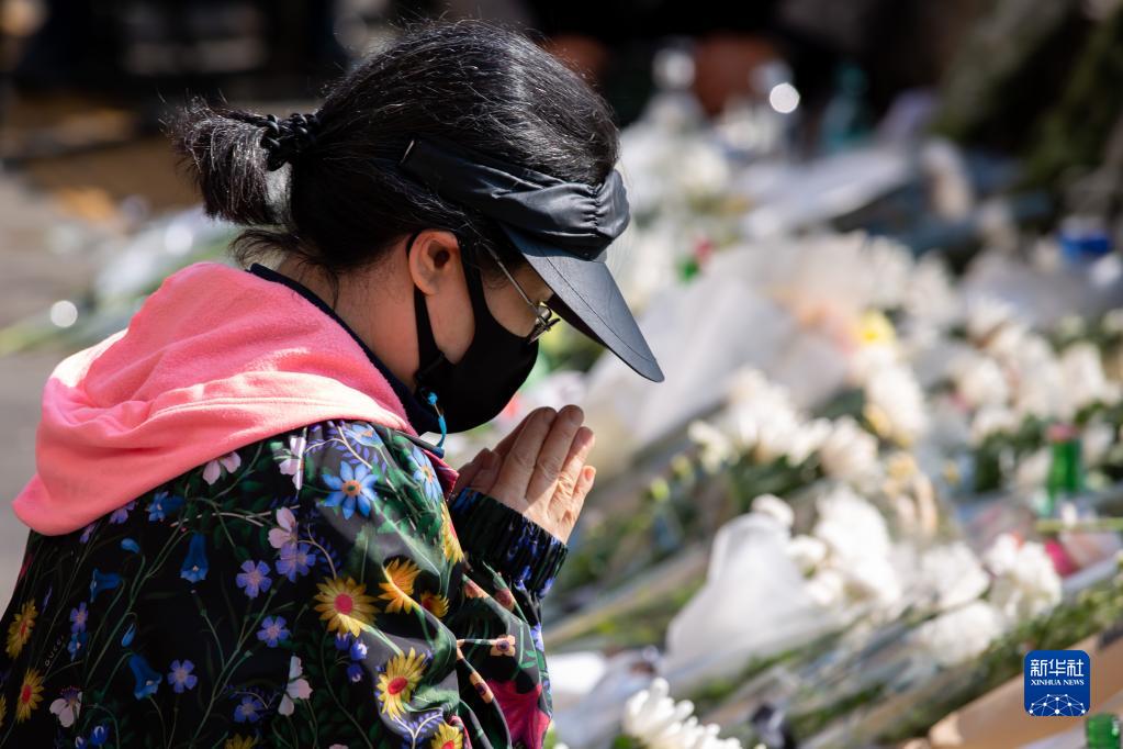 10月31日,民众在韩国首尔市龙山区梨泰院洞一带悼念踩踏事故遇难者。