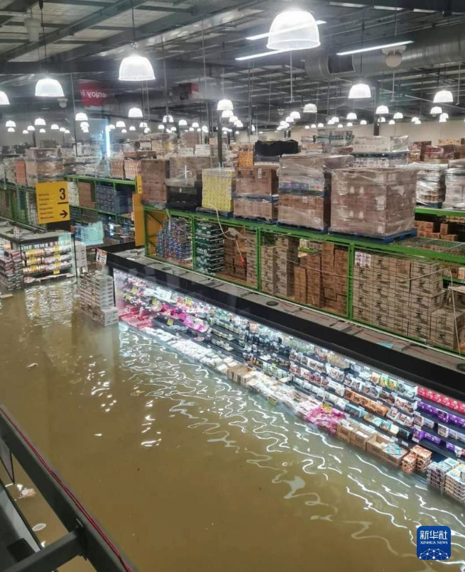这张来自社交媒体的照片显示,1月27日,新西兰奥克兰一大型超市遭洪水侵袭。新西兰最大城市奥克兰27日因暴雨引发洪水,城市进入紧急状态。 新华社发