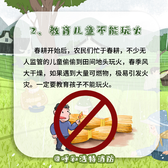 春回大地,气温回升,当前正是春耕的重要时节。春季风干物燥,农村可燃物又多,一旦不慎大火起,山林尽毁房屋险。如何保障春耕安全?这份安全提示请收好↓↓