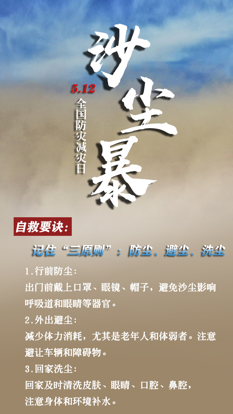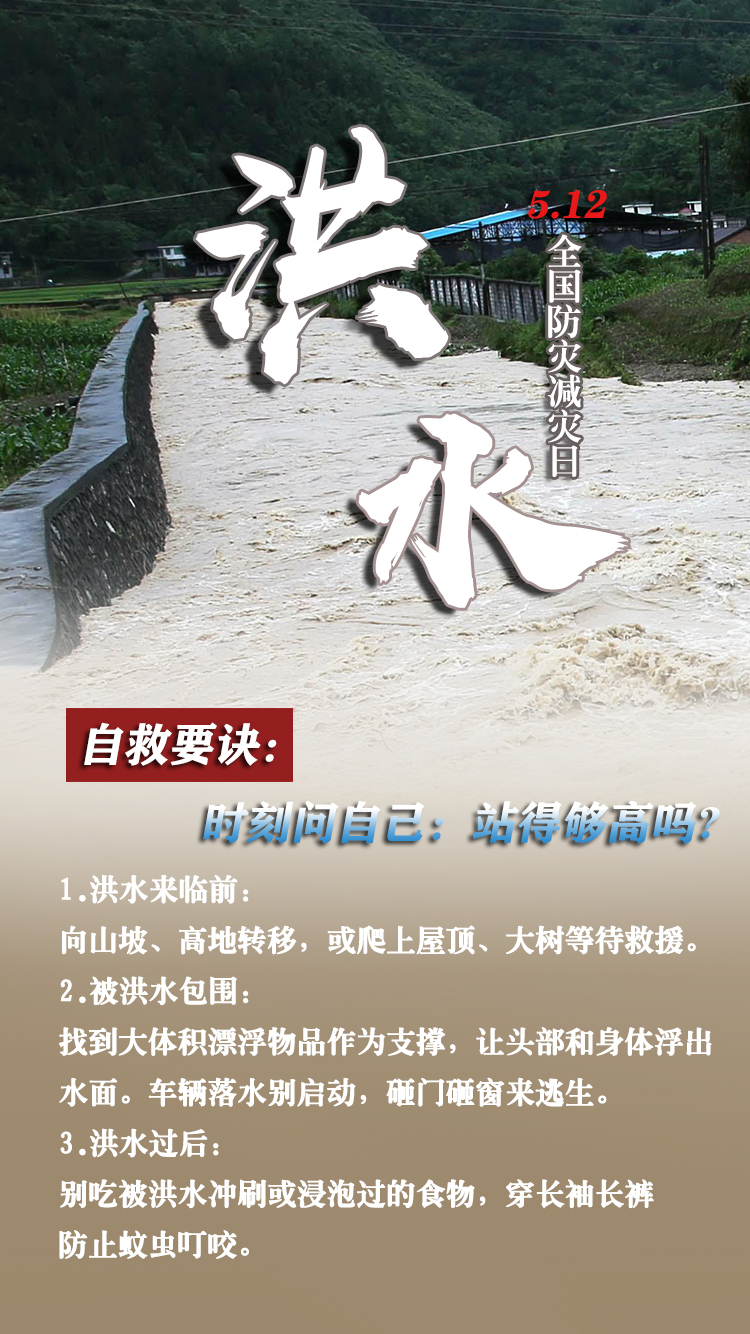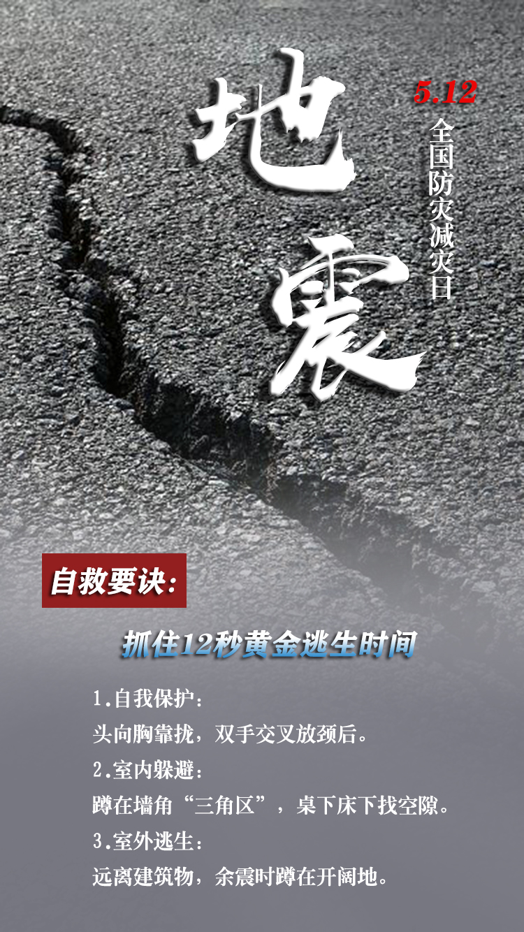 今天是第15个全国防灾减灾日。自然灾害随时可能发生,及时自救才更有生存希望。地震来时,如何抓住12秒黄金逃生时间?发生火灾时,如何躲避火场浓烟?暴雨天如何安全出行?沙尘天气如何做好防护……这份实用避险口诀简单好记,请速速收藏。