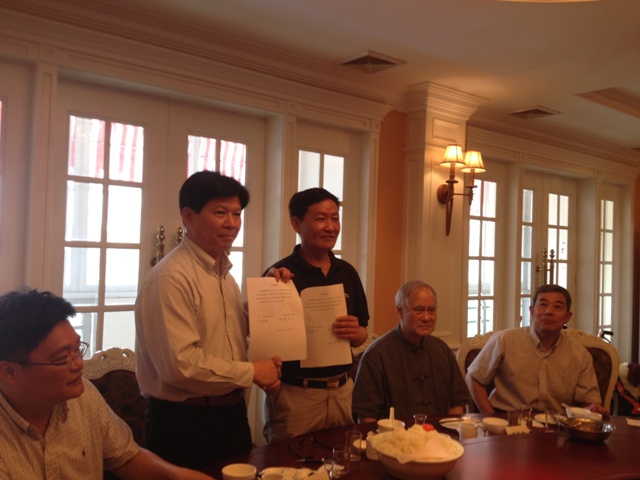 广西记协主席李启瑞(左三)与中华资深记者协会理事长赖连金(左二)签署长期交流合作意向书 沈毅兵 摄