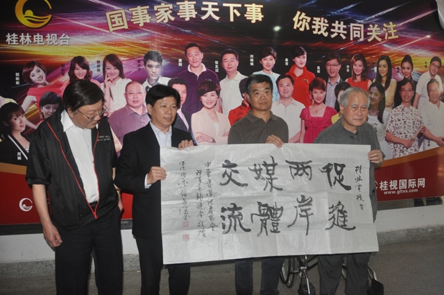 中华资深记者协会向桂林电视台赠送字画 沈毅兵 摄