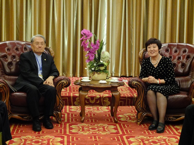 中国记协书记处书记王冬梅(右)会见台湾中华广播商业同业公会理事长马长生及其一行 杨坤 摄