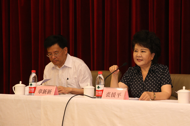 国务院侨办主任裘援平(右)出席报告会并讲话