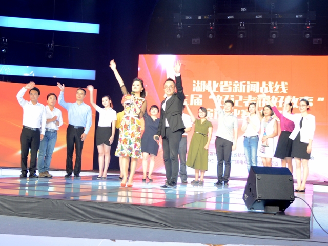 参赛选手及主持人赛后集体登台,向观众挥手致意 湖北省记协 许明锋 摄