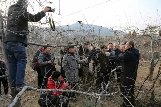 2016年1月,李保国给当地村民讲授果树冬剪实用技术,媒体记者现场采访