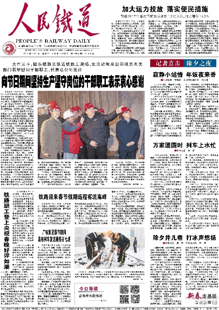 2017年铁路春运开始之前,《人民铁道》报社鼓励记者到职工和旅客身边去。春节期间和春运期间,报社总编辑毕锋亲自带队,本部记者、各驻地记者、影视和网站记者、摄影记者共30余人参与了“新春走基层”活动。